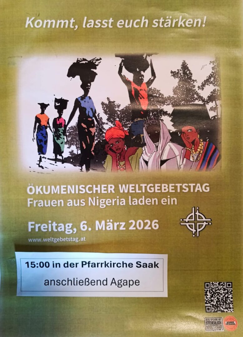 Frauen aus Nigeria laden dazu ein! In der Pfarrkirche Saak mit anschließender Agape.